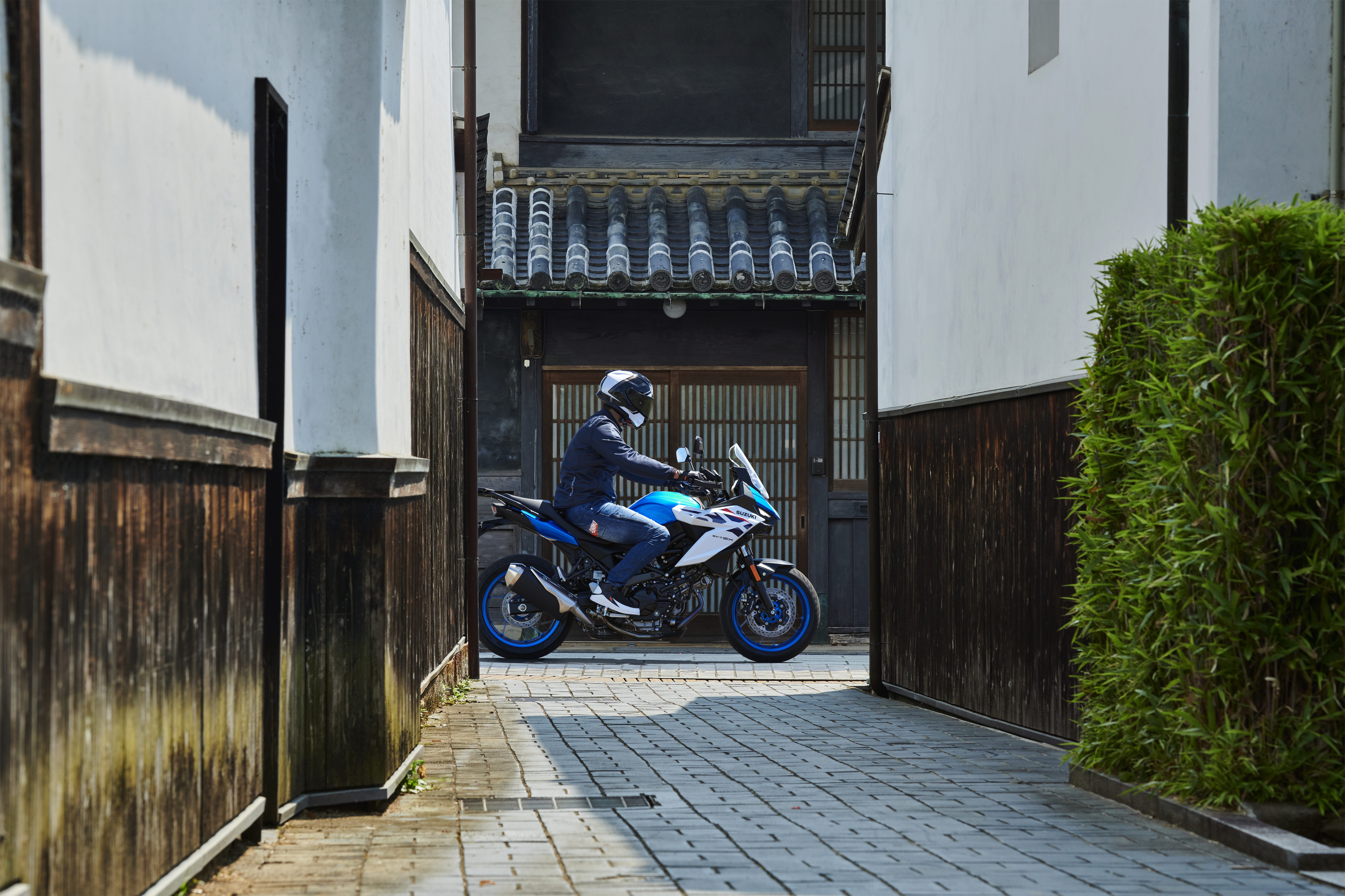 De SV-7GX biedt het gebruiksgemak van een street-motorfiets met het stoere design en de veelzijdigheid van een sportieve allroad-motor. Zijn uiterlijk is geïnspireerd op de GSX-S1000GX, het motorblok is de bekende – maar gemoderniseerde – 645 cm3 V-twin uit de SV650 en de V-Strom 650.